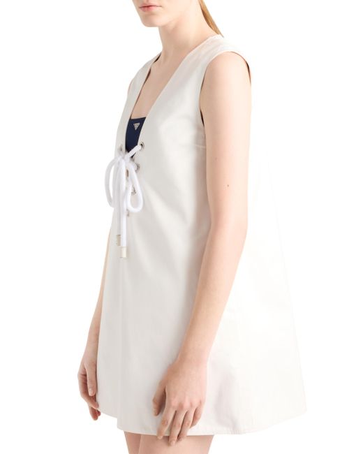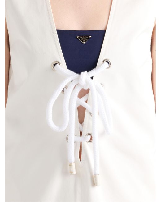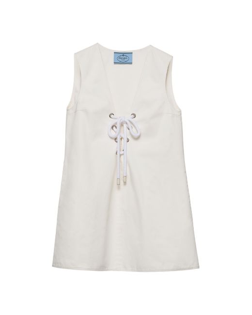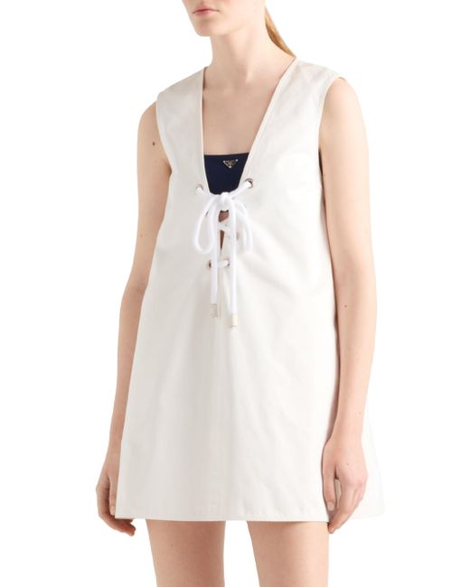 Flared fit V-neck Sleeveless Fabric triangle logo Flared hem Imported 100% Cotton. Lsd Rtw - Prada Rtw > Prada > Saks Fifth Avenue > Barneys. Prada. Color: White. Size: 8.