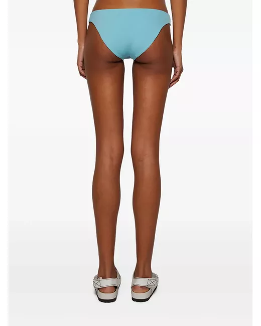 teal blue seamless construction moderate coverage smooth edges minimalistic style Be mindful to try on swimwear over your own garments.