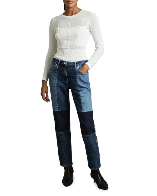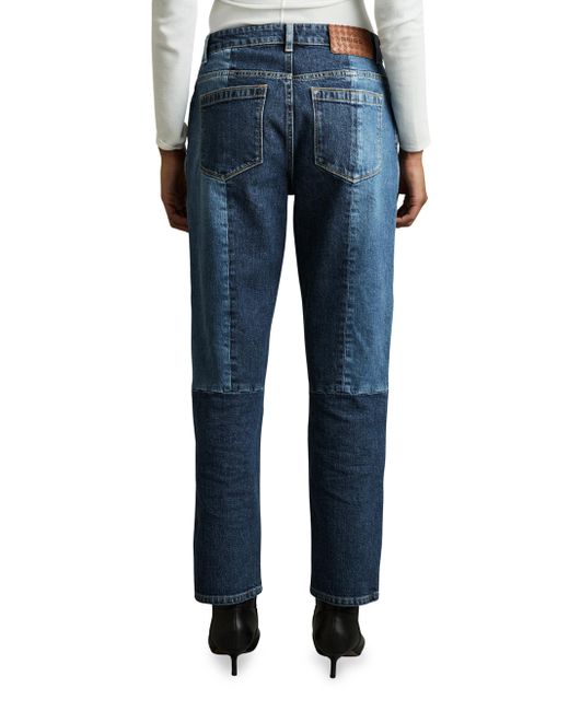 Crafted in patchwork-style denim, Reiss' straight-leg jeans feature a classic five-pocket style and mid-rise fit. Five-pocket style Zip fly, button closure 99% cotton/1% elastane Machine wash Imported SIZE & FIT Model measurements: 5'10" tall Model is wearing a US size 4. Modern Collections - Modern Trend > Reiss > Saks Fifth Avenue > Barneys. Reiss. Color: Mid Blue. Size: 25.
