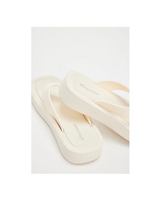 An elevated take on classic flip-flops, these feature thick thong straps, a cushioned footbed, and flatform soles for added height. **Features:** Slip-on style, thick, thong uppers, cushioned footbed, square toe, platform soles **Why We ❤ It:** Effortlessly elevate casual ‘fits with these staple sandals. Darcie Platform Flip Flops by Jeffrey Campbell at Free People in Sea Salt, Size: US 6