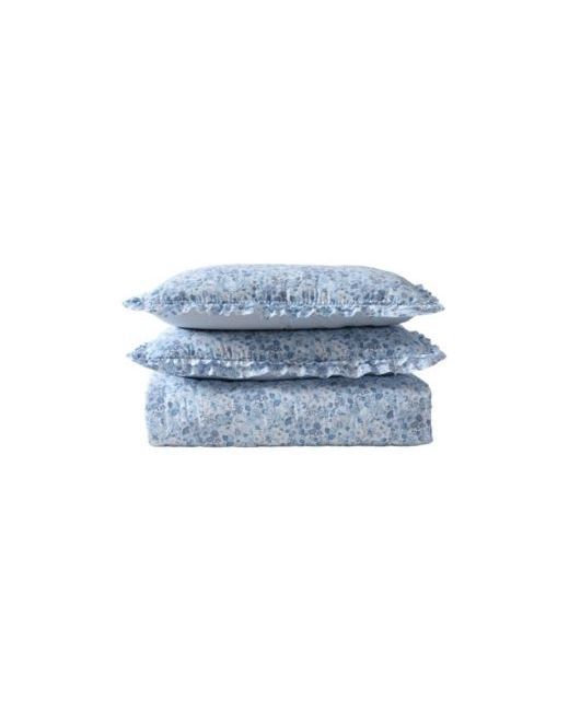 Made from the highest quality microfiber, the Quartet quilt is incredibly soft to the touch. The quilt features an all-over blue floral print with an elegant embroidered dot pick stitch and a 2" double ruffle embellishment, adding a touch of sophistication and femininity to the design.