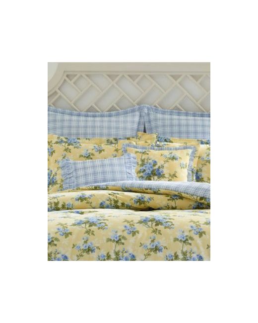 A sunny buttercup yellow background is the perfect showcase for these romantic delft blue roses straight from an English country garden. A pale damask shadow effect in the background adds additional depth and interest to this lovely print.