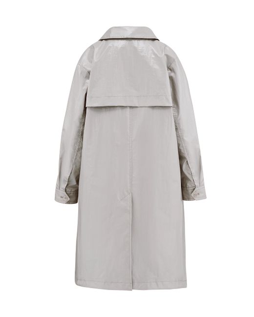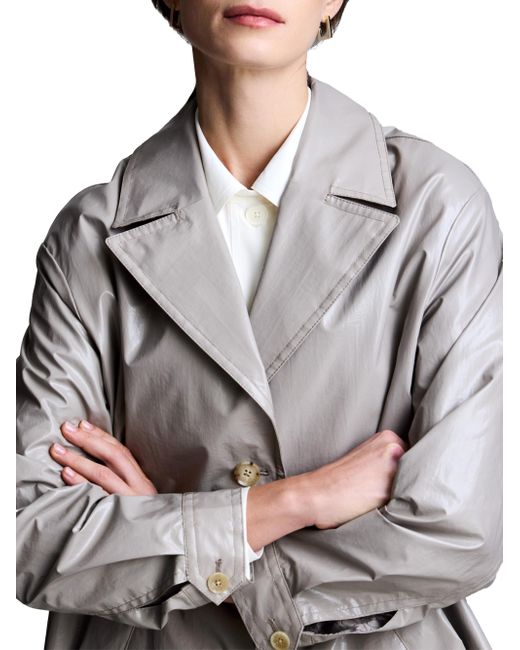 This trench coat from Jane Post is styled with a single-breasted tailored fit and features a glossy finish. Peak lapels Long sleeves Side slit pockets Button-front closure 100% polyurethane Spot clean Imported SIZE & FIT About 36" from shoulder to hem Model measurements: 5'10" tall Model is wearing a US size small. Outerwear And Swimwear - Rain & Quilts > Jane Post > Saks Fifth Avenue > Barneys. Jane Post. Color: Grey. Size: XS.