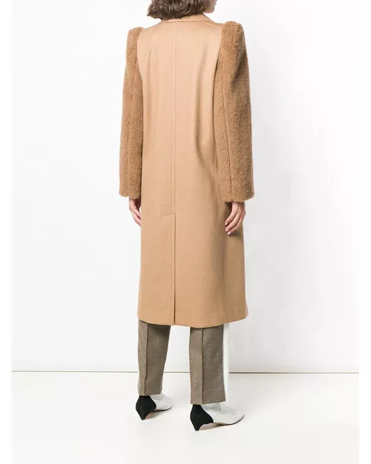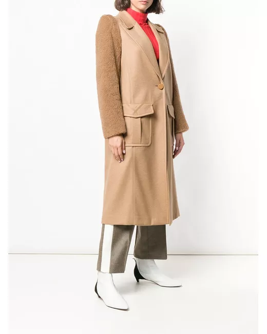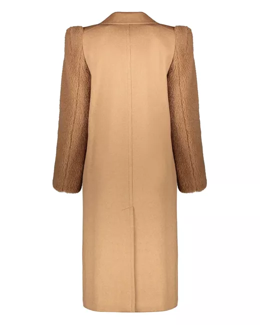 Brown camel hair and cotton front lace-up fastening two side flap pockets central rear vent