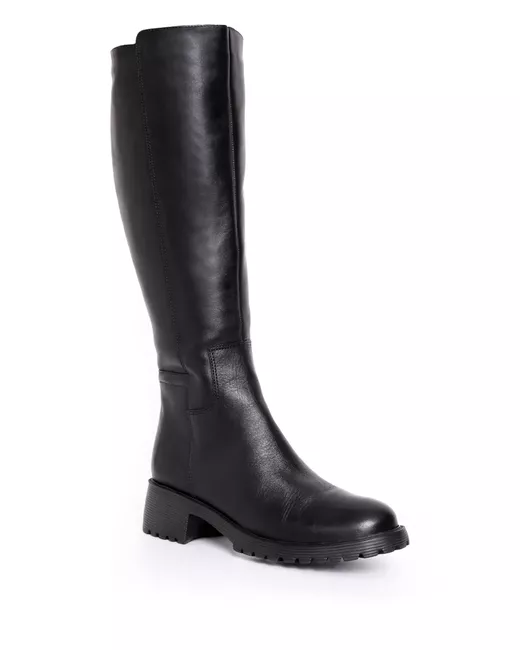 black side zip fastening low stacked heel rubber lug sole knee-high