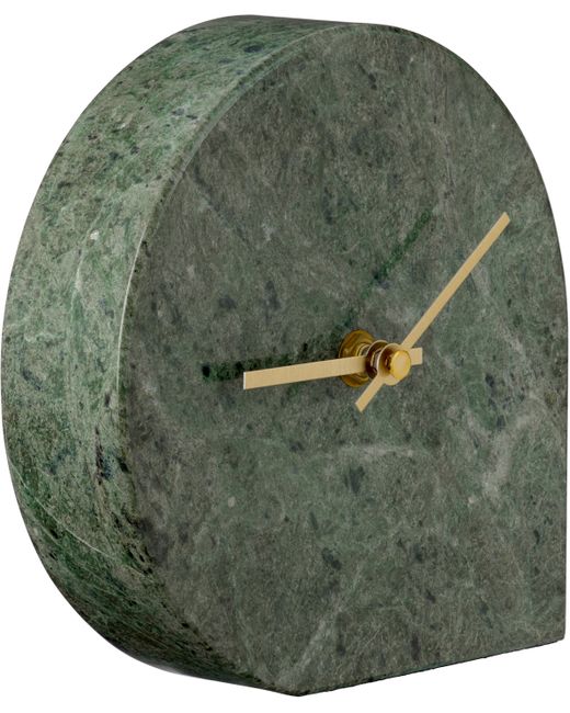 Solid marble clock in green. · Veining throughout · Brass arms in gold tone · 1x AA battery required · H15.8 x W16 x D4 cm Supplier color: Forest