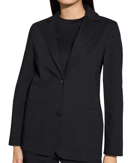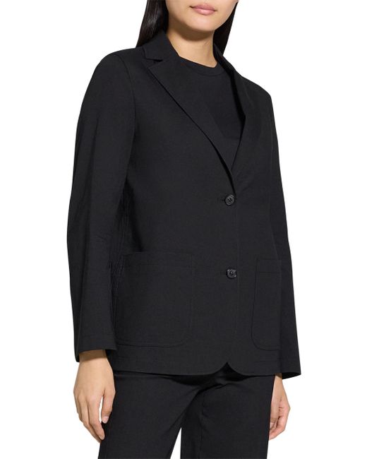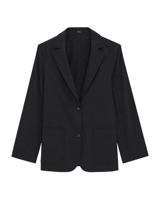 Crafted of a linen blend, this relaxed-fit Theory jacket is detailed with notch lapels, side patch pockets, and a single-breasted button-front closure. Notch lapels Long sleeves Side patch pockets Single-breasted button-front closure 62% linen/36% viscose/2% elastane Dry clean Imported SIZE & FIT About 26.75" from shoulder to hem Model measurements: 5'10" tall Model is wearing US size 4 ABOUT THE BRAND In 2000, founders Andrew Rosen and Elie Tahari launched Theory with a focus on innovative, comfortable stretch pants for women. Since then, the New York-based brand has become well-known for its mastery of polished, well-tailored separates for women and men. Contemporary Sportswear - Theory Sportswear > Theory > Saks Fifth Avenue > Barneys. Theory. Color: Black. Size: 00.