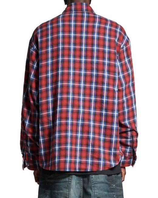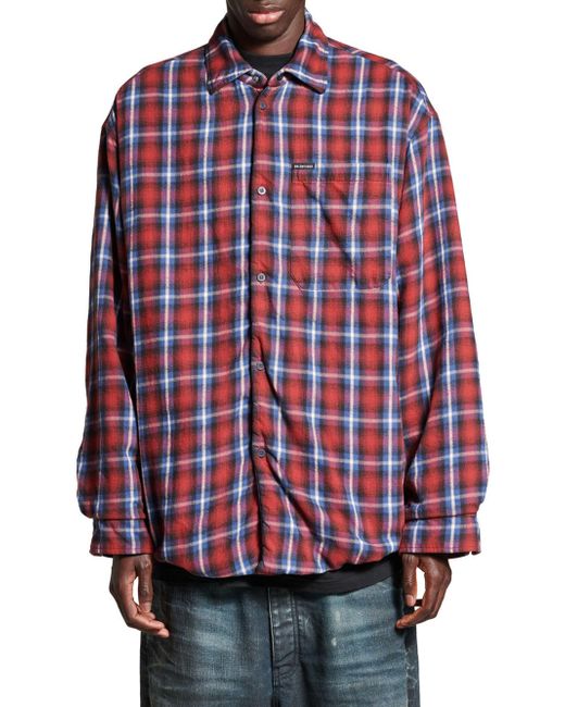Cotton check flannel Lined Button-down collar 6 button front 1 patch pocket at chest Long sleeves Snap cuffs Main Material: 100% Cotton - Lining: 100% Cotton - Contains Non-Textile Parts Of Animal Origin Made in Italy. Lsd Rtw - Balenciaga Rtw > Balenciaga > Saks Fifth Avenue > Barneys. Balenciaga. Color: Red Blue. Size: Large.