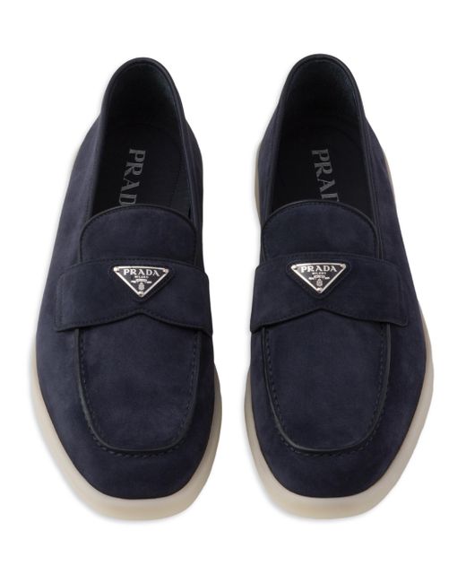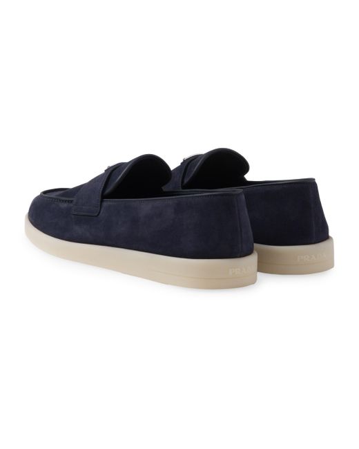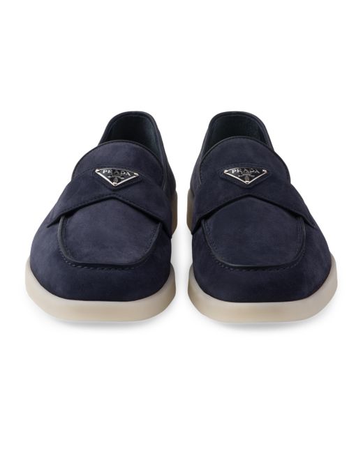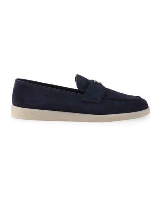 These suede loafers decorated with the distinctive triangle logo feature a modern silhouette with clean lines. Apron with pinched stitch seam Light rubber sole Heel height: 15mm / 0.5'' Removable leather-covered insole 100% Lamb leather Imported. Lsd Rtw - Prada Rtw > Prada > Saks Fifth Avenue > Barneys. Prada. Color: Blue. Size: 5.