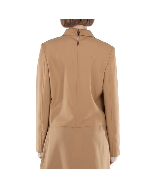 Marni Ladies Outerwear. Fashion category: Blazers. SKU: GIMA0242SU-DIJON. Color: Beige. Marni Single-Breasted Wool Blazer Jacket. This blazer is crafted from virgin wool in an interlock weave, featuring decorative stitching, layered details, a pointed flat collar, long sleeves, two front flap pockets, cut-out detailing at the rear, full lining, and both front and rear button fastenings. Outer: Virgin Wool 100%. Made in Italy.