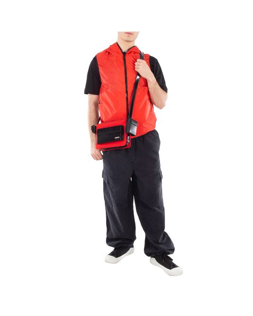 Ferragamo Mens Crossbody. SKU: 241264 760734. Color: Red. Ferragamo Adjustable Strap Crossbody Bag. This bag features a multi-pocket design with adjustable shoulder straps and two removable pockets. Material: Calfskin. Made in Italy.