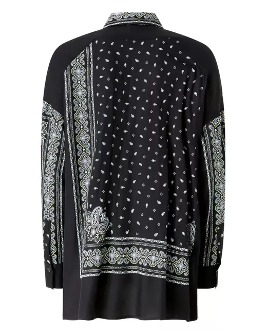 black front button fastening buttoned cuffs drawstring hem high-low hem