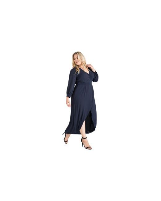 A stunning plus-sized, midnight blue high-low wrap dress that is breezy and beautiful. This material is lightweight and flows down into a gorgeous high-low hem. The long, kimono-style sleeves are gathered at the end for a classier, structured feel.