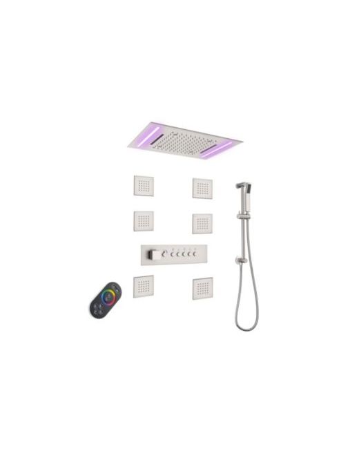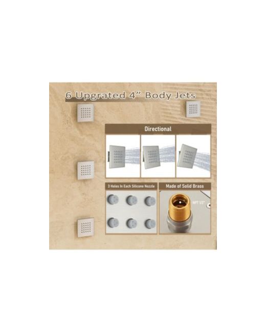 Wash the day away with our Four-In-One Shower Faucet! Use the waterfall/rainfall shower, hand shower, and 6 body jets together or separately to get water where you need it most. The Led light will add an extra luxurious experience and relaxation! An anti-scald thermostatic valve with five handles is used for temperature control and shower faucet control which also adds convenience. Our shower faucet system always gives an amazing spray of water and adds the perfect touch to complete the look of your bathroom. If you are looking for elegance and performance, don't hesitate to choose our product.
