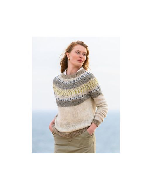 Refresh your knitwear collection with our cosy sweater, created in Donegal wool sourced from Donegal Yarns, Ireland. Our designers have used a pretty float-stitch detail to give the curved yoke a little extra charm, while the crew neckline, hem and cuffs are all designed with a purl knit for subtle contrast.