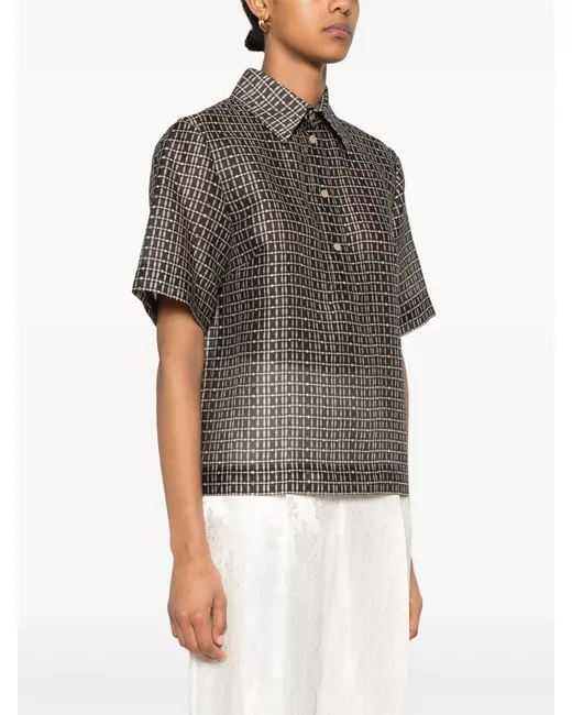 chocolate brown short front button fastening classic collar short sleeves rear slit