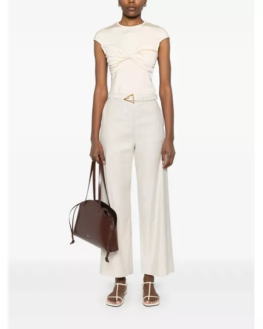 almond beige concealed front button, hook and zip fastening two diagonal pockets to the sides two rear welt pockets belt loops