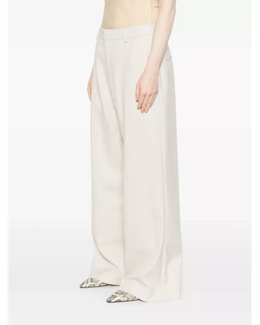 almond beige concealed front button, hook and zip fastening two diagonal pockets to the sides two rear welt pockets belt loops