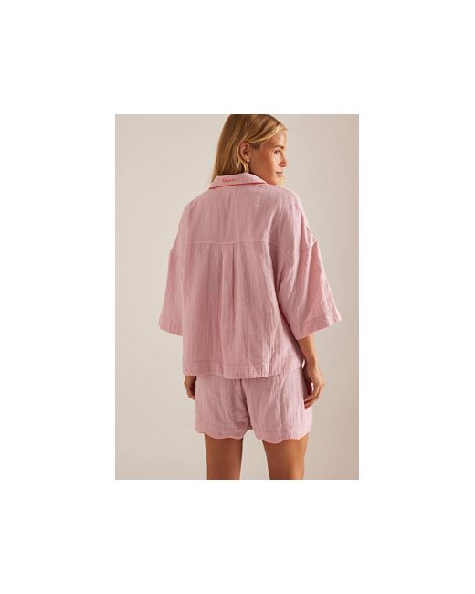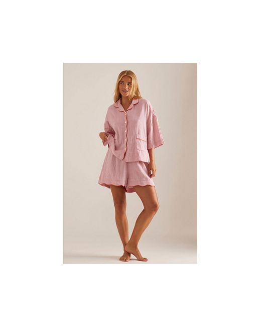 By TBCo 100% Cotton Set includes button-front shirt and pull-on shorts Front patch pockets Scallop trims Machine wash Imported Short Scallop-Trim Pyjama Set by TBCo in Pink, Women's Size: XS, Cotton at Anthropologie