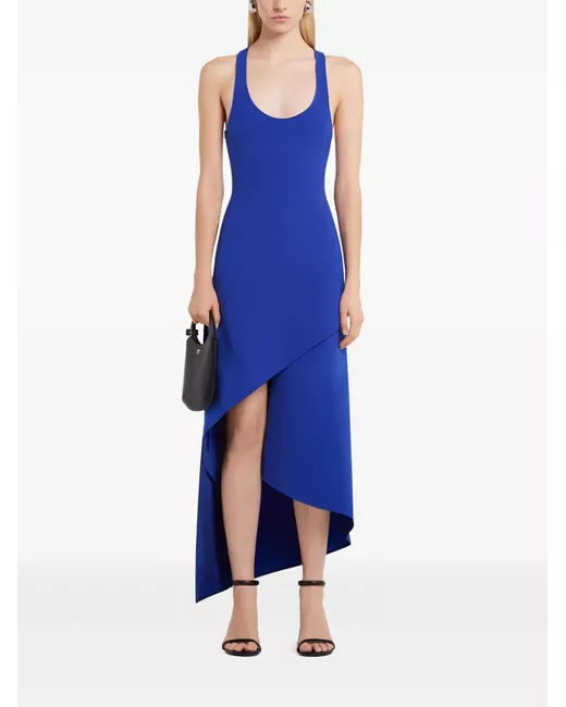 royal blue side zip fastening scoop neck sleeveless asymmetric hem