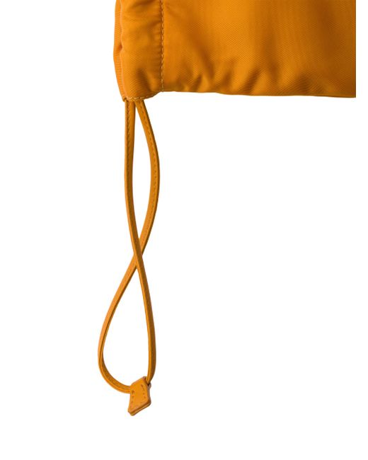 Leather drawstring closure Enameled metal triangle logo Re-Nylon interior with patch pocket Imported 100% Recycled Polyamide 11.8'' W x 13.7'' H. Lsd Handbags - Prada Handbags Access > Prada > Saks Fifth Avenue > Barneys. Prada. Color: Orange.