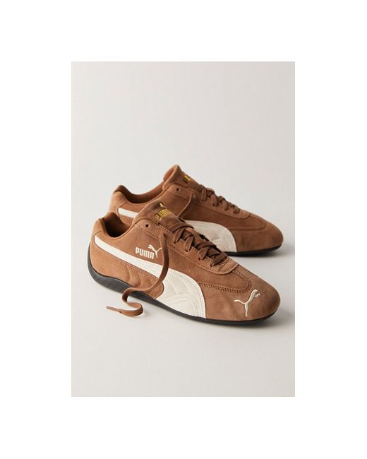 An iconic silhouette returns with these sleek sneakers from Puma, featured in a soft, supple suede with their signature Formstrip detail for an overall timeless pair. **Features:** Low-top style, suede uppers, Formstrip overlay at lateral side, IMEVA sole, rubber outsole, lace-up closure **Why We ❤ It:** A classic addition to your shoe collection. Puma Speedcat Sneakers at Free People in Haute Coffee/Frosted Ivory, Size: US 6.5 M