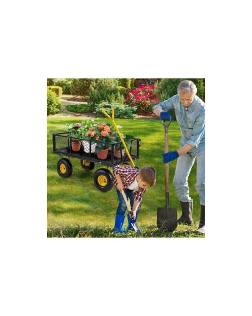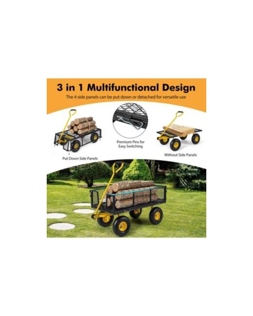 This 3-in-1 multifunctional garden cart adapts to various tasks with detachable side panels, holding up to 900 lbs. Designed for smooth transport on diverse terrains, it features a U-shaped adjustable handle, 10" non-slip tires, and rustproof steel grids. With flexible storage and a detachable rubber mat, it's perfect for carrying plants, logs, groceries, and more.
