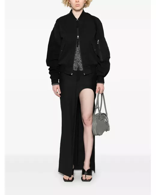 black front two-way zip fastening ribbed cuffs and hem two press-stud fastening side pockets sleeve zip pocket