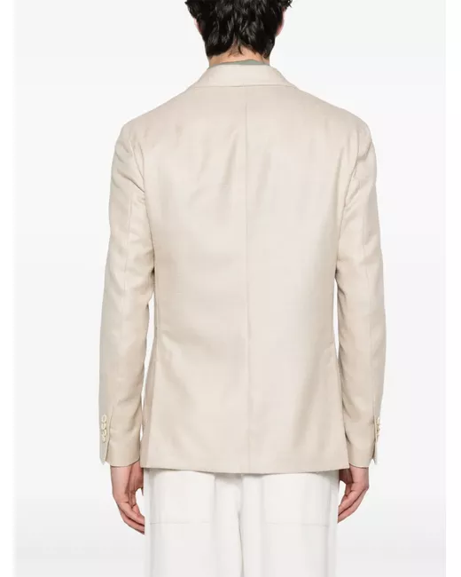 light beige two front patch pockets English rear vents multiple internal slip pockets