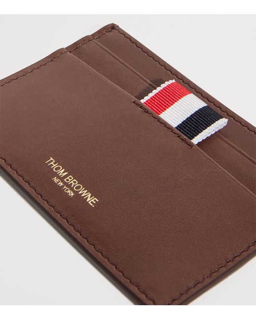 A tricolour striped tab defines this Thom Browne card holder - though free from monikers or motifs, the detail is one that will be recognised instantly by fans of the brand. Elsewhere, the accessory remains sleek and streamlined, with buttery leather used to craft a functional silhouette complete with card slots and a note compartment.
