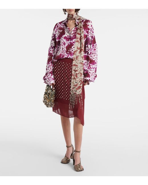 Material: 100% viscose. Care instructions: dry clean. Made in Hungary. Designer color name: Fuchsia. Item color: burgundy. Closure: buttoned front. Buttoned cuffs.