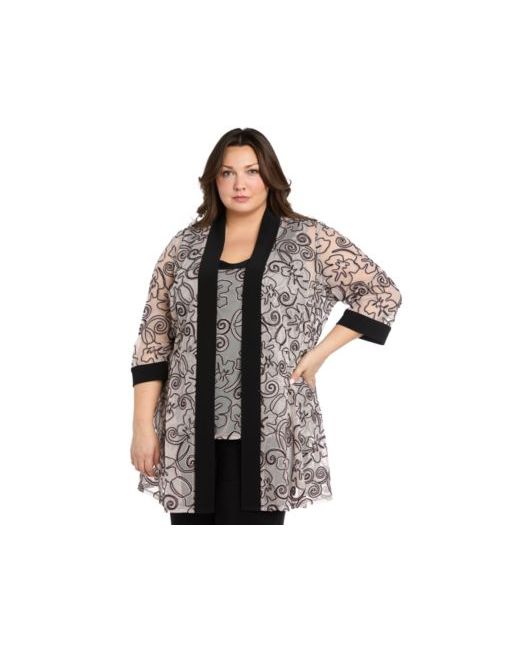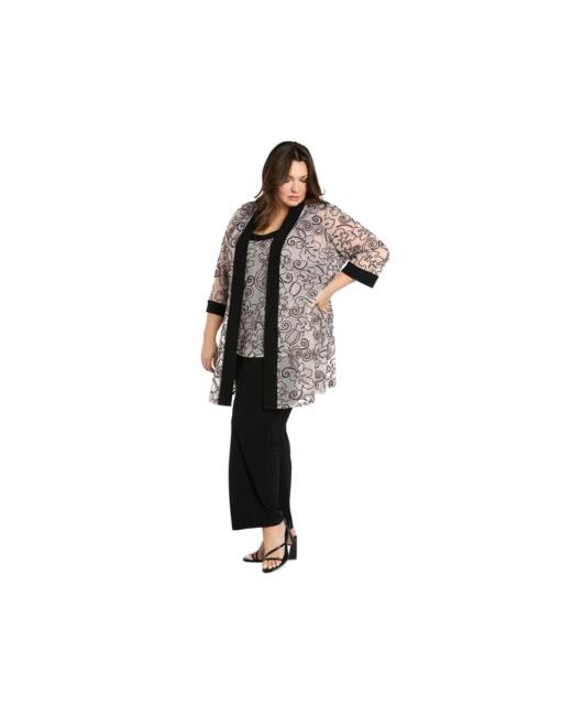 Elevate your wardrobe with this plus size layered-look jacket/top and pants set from R & M Richards, offering a perfectly coordinated look with flattering silhouettes and effortless style for any occasion.