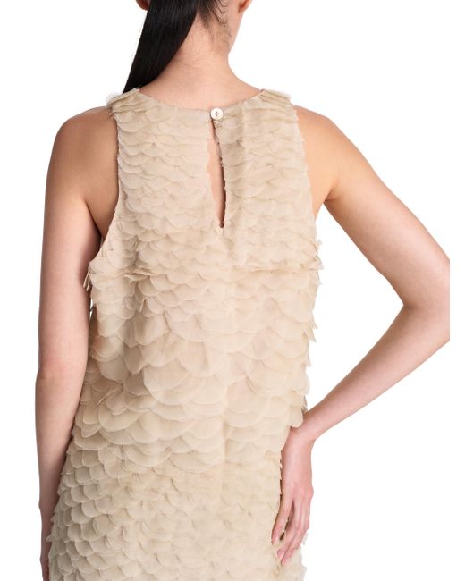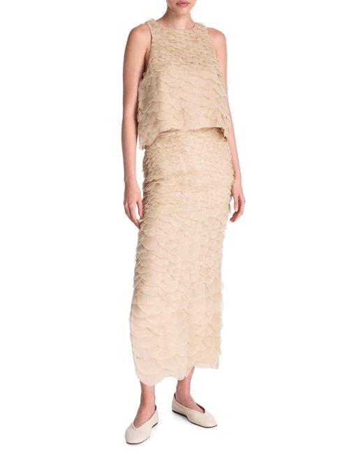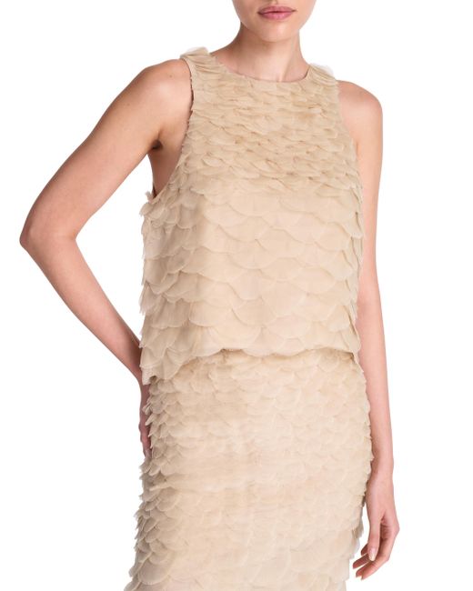 Crafted of silk, this TWP top highlights a fish scale-inspired layered design. Roundneck Sleeveless Back keyhole closure 100% silk Dry clean Imported SIZE & FIT About 18.75" from shoulder to hem Model measurements: 5'10" tall Model is wearing a US size Small ABOUT THE BRAND New York-based label TWP offers modern, effortless takes on go-to wardrobe staples. On a mission to democratize luxury, founder Trish Westcoat Pound, of Haute Hippie fame, focuses on high-quality details and subtle-yet-alluring silhouettes to create elevated, everyday pieces-all made in the U.S. with fabrics sourced from Italy. Contemporary Sportswear - Contemporary Lifestyle > Twp > Saks Fifth Avenue > Barneys. TWP. Color: Khaki. Size: XS.