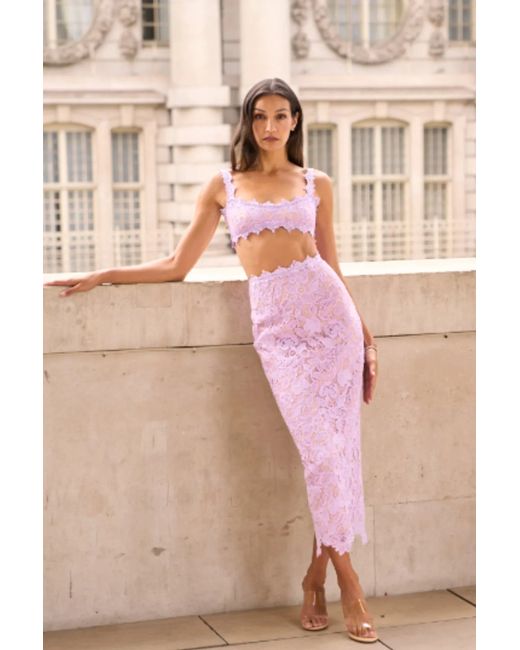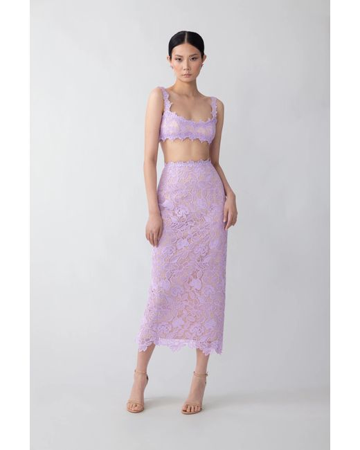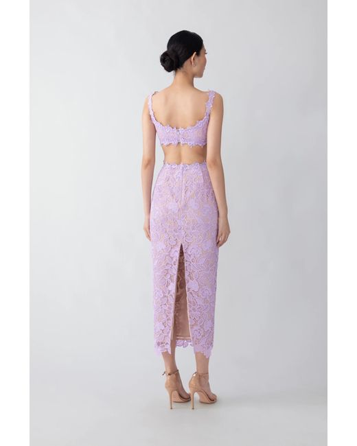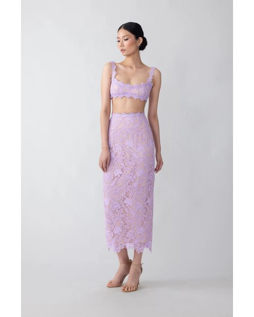 Lace set with a bralette and a midi pencil skirt with a high back slit