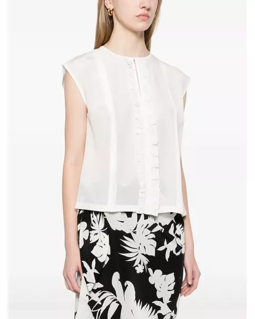 white front button fastening sleeveless straight hem