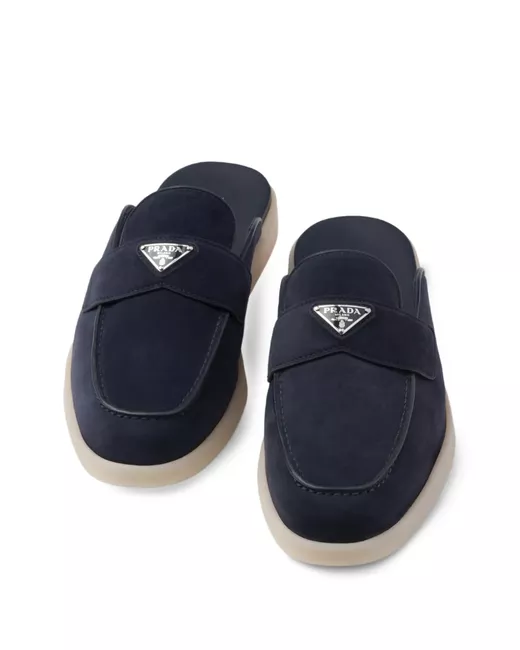 sleek silhouette front strap detail contrasting sole slip-on style navy blue