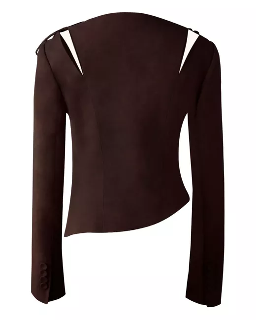 chocolate brown concealed press-stud fastening cut-out detailing V-neck asymmetric hem