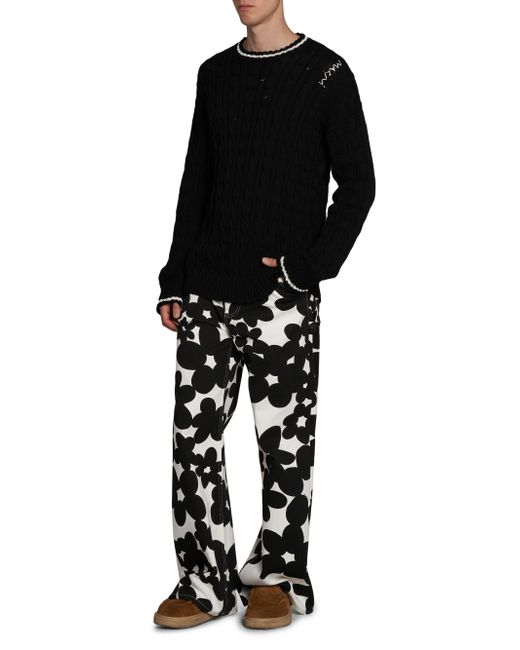 A classic cable knit sweater from Marni gets edgy with a touch of distressing and the Italian label's signature logo hand embroidered at the shoulder. Crewneck Short sleeves 100% cotton Dry clean Made in Italy SIZE & FIT Model measurements: 6'2" tall Model is wearing a US size Medium. Men Advcd Dsgnr - Advanced Designer Collec > Marni > Saks Fifth Avenue > Barneys. Marni. Color: Black. Size: 38.