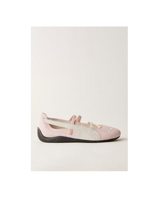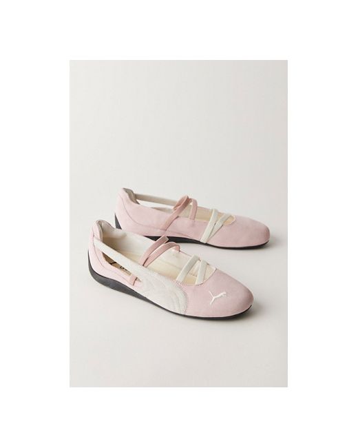 Turn heads with these race-inspired flats, featuring a low-profile, sleek sporty lines, and elastic bands for a snug fit. **Features:** Slip-on style, leather uppers, embroidered PUMA cat, round toe, OrthoLite® sockliner, rubber outsoles the heels **Why We ❤ It:** Pair with slouchy socks for a playful touch. Puma Speedcat Ballet Sneakers at Free People in Whisp Of Pink/Warm White, Size: US 8