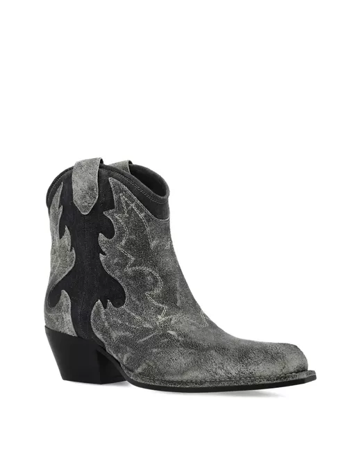 dark grey slip-on style mid block heel double pull-tab at the opening branded insole