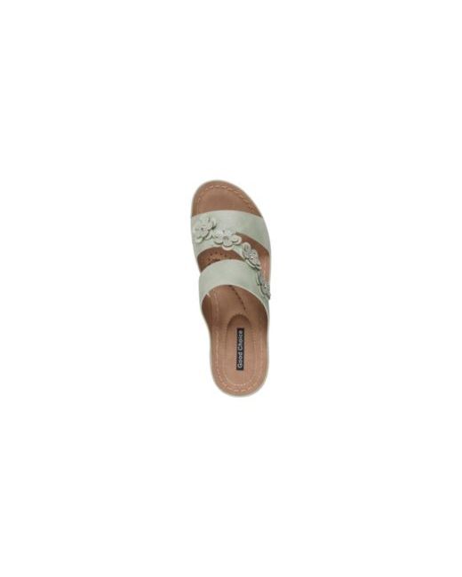 Step into effortless elegance with the Gc Shoes Women's Halia Floral Wedge Sandals. Designed with delicate floral embellishments and a double-strap silhouette, these wedges blend style and comfort seamlessly. The cushioned footbed and sturdy wedge heel provide all-day support, making them ideal for both casual and dressy occasions. Perfect for adding a feminine touch to any outfit.