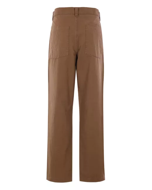 tobacco brown concealed fly and button fastening two side slash pockets two rear patch pockets belt loops