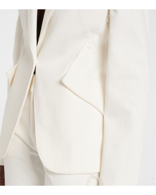Material: 98% cotton, 2% elastane. Care instructions: dry clean. Made in Italy. Designer color name: Optical White. Item color: white. Peak lapel. Closure: single-breasted (one button). Pockets: flap pockets.