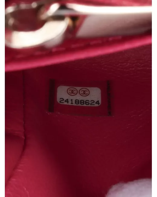 quilted leather body leather woven chain strap front flap with CC turn-lock closure exterior back slip pocket interior zip and slip pockets pink Serial Number: 24188624 Inclusions: authenticity card. Condition: GOOD. This previously owned and used item is in good condition with minimal signs of use. This may include fading of material or plating and scratches. Declared Damages: Interior Lining Feature(s) Moderate Cracks. Please refer to the photos on this product page for a detailed view of the item, including any damages declared.