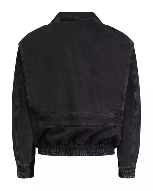 black front press-stud fastening two side flap pockets eyelet embellishment long sleeves