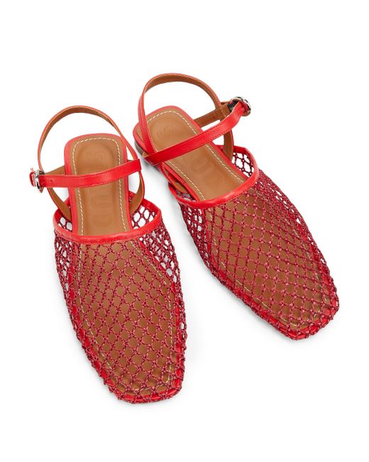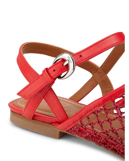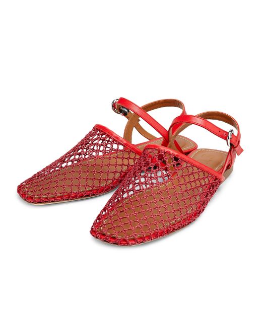 Made in Portugal, these Rete mesh sandals from Schutz are designed with a square toe and buckle closure. Square toe Buckle closure Polyester upper Leather trim Leather/ABS sole Made in Portugal. Women's Shoes - Workshop Shoes > Staud > Saks Fifth Avenue > Barneys. Staud. Color: Red Netting. Size: 5.