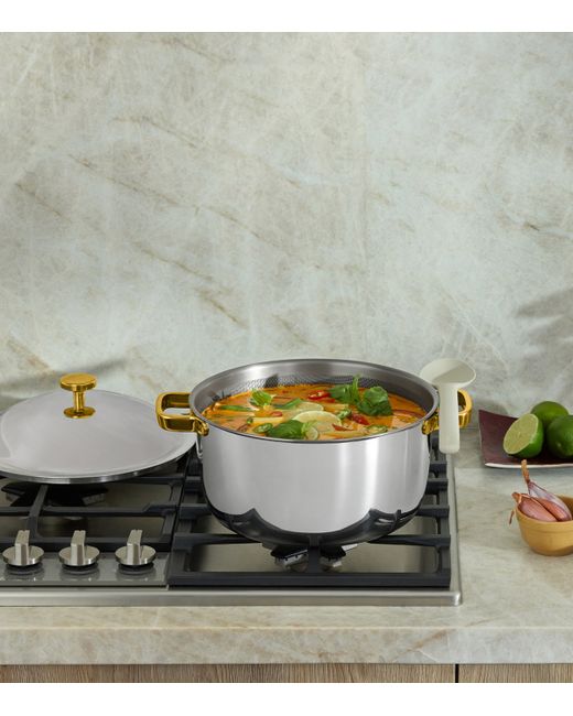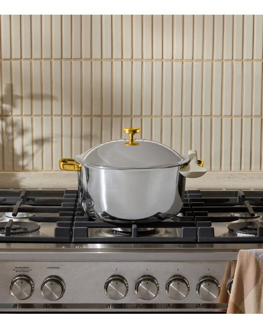 Designed to last a lifetime, the titanium Perfect Pot Pro by Our Place is the first to receive the new no-coating technology. Microscopic grooves help to create the ultimate non-stick surface without a chemical coating, while the fully clad, tri-ply titanium construction offers 300% more durability than stainless steel. Best of all, its base is deep enough to fry and shallow enough to sear for the ultimate in multifunctional cooking.