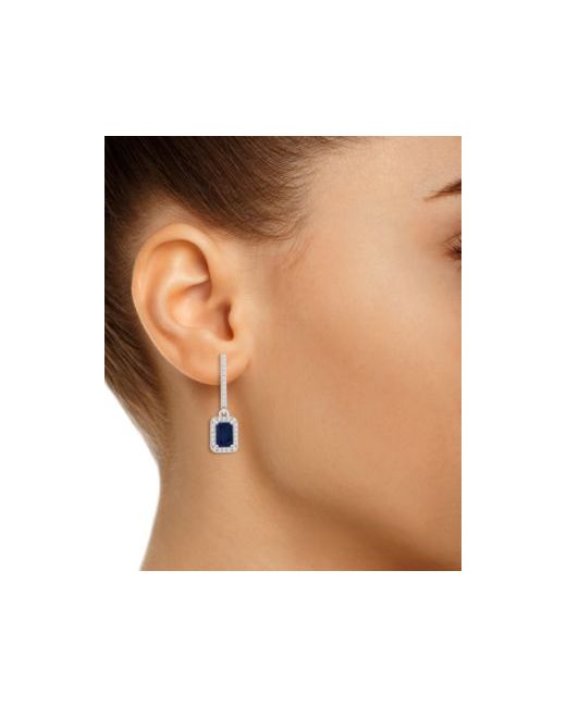 Women's Blue Emerald 1-1/8 ct. t.w. Diamond 1/3 Leverback Drop Earrings Sterling Silver Also Ruby