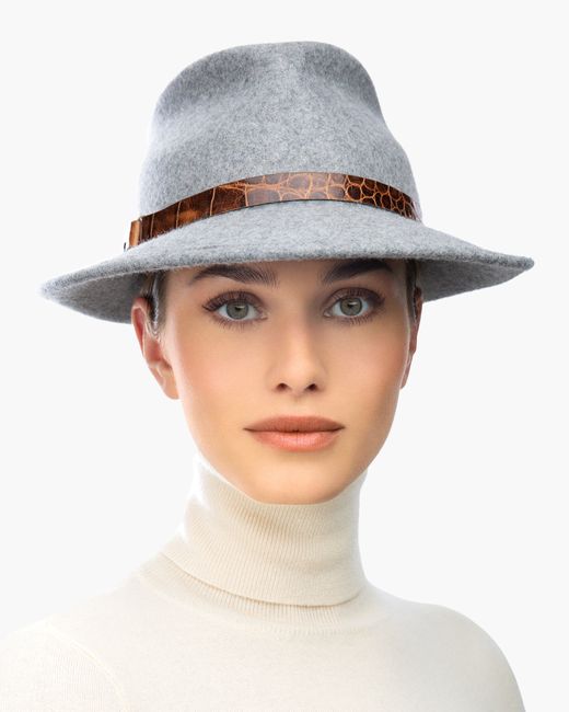 This water-repellent wool-felt fedora is perfect for those who don't want too many hats. The abbreviated brim looks snappy and is reminiscent of mannish hats from the 1950s. This wardrobe staple has an adjustable band of embossed calf leather with antique hardware. The Crown is lined. The elasticized inner band fits most. Imported. Brim Span: 2.5"