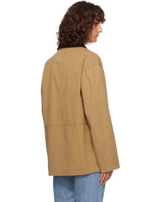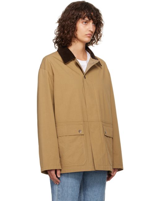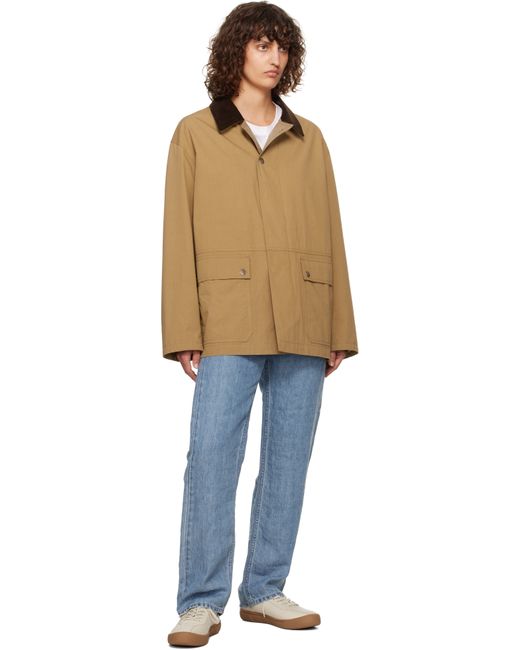 Enzyme-washed cotton canvas jacket. · Corduroy trim at spread collar · Two-way zip closure with press-stud placket · Flap pockets · Dropped shoulders · Metal eyelets at underarms · Full poplin lining Supplier color: Deep bistre